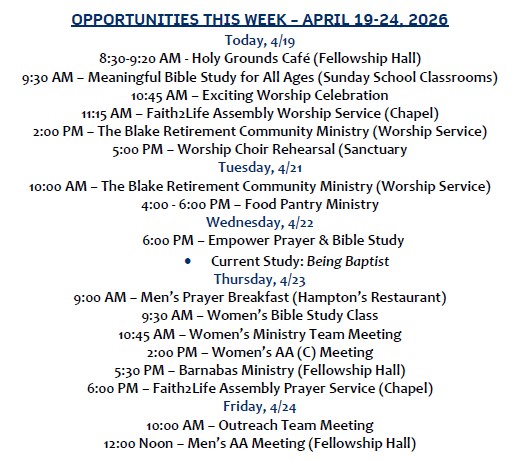 Here, you’ll find inspirational Bible preaching, uplifting music, heartfelt worship, and meaningful opportunities to grow in your relationship with the Lord. Our Bible Study classes are thoughtfully designed to meet the needs of individuals and families at every stage of their Christian walk—helping each one develop a growing, personal connection with Christ. We also provide numerous ministry opportunities in which people may use their gifts and talents to serve God and the surrounding community.